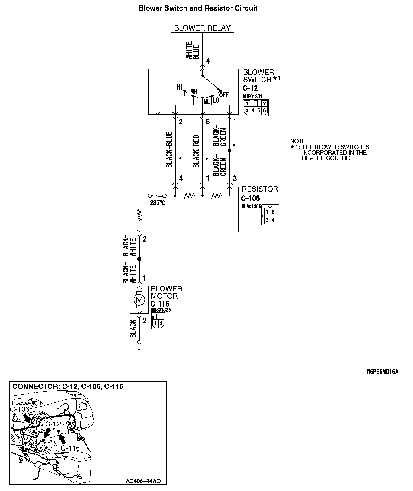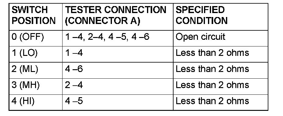 INSPECTION PROCEDURE 5: Blower Air Amount cannot be Changed.Blower Switch And Resistor Circuit:
