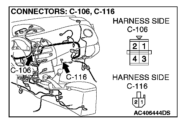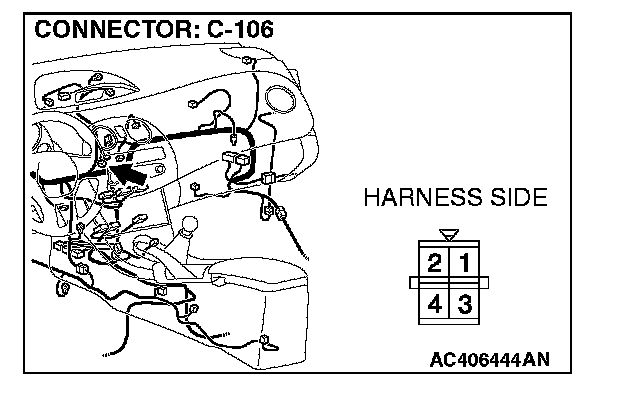 STEP 1. Check resistor connector C-106 for loose, corroded or damaged terminals, or terminals pushed back in the connector.