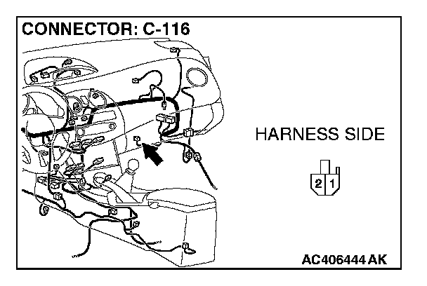 STEP 3. Check blower motor connector C-116 for loose, corroded or damaged terminals, or terminals pushed back in the connector.