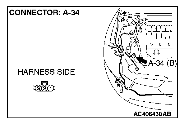 STEP 7. Check A/C pressure sensor connector A-34 for loose, corroded or damaged terminals, or terminals pushed back in the connector.