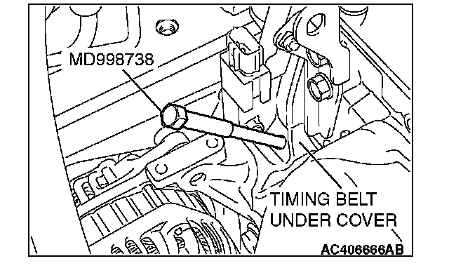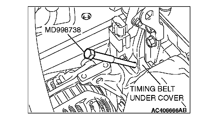 3. Screw in special tool MD998738 by hand until it contacts the timing belt tensioner arm.