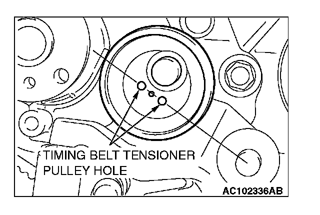 NOTE: When replacing the timing belt tensioner adjuster with new parts, the timing belt tensioner adjuster is set with a pin.