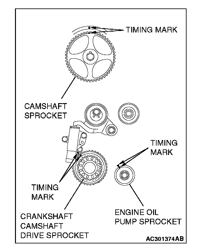 VALVE TIMING BELT INSTALLATION1. Align the timing marks on the camshaft sprocket, crankshaft camshaft drive sprocket and engine oil pump sprocket.