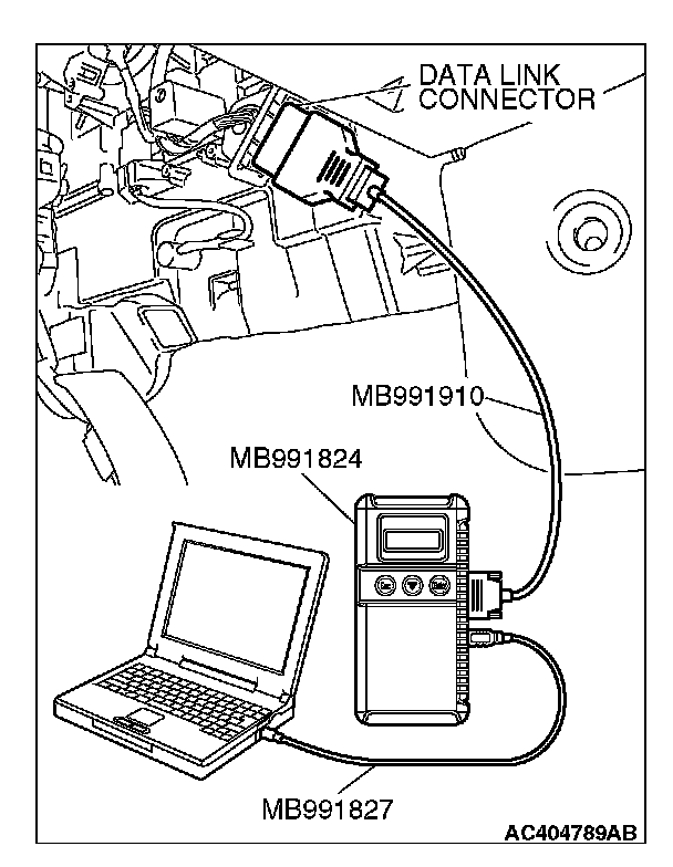 NOTE: Disconnecting scan tool MB991958 is the reverse of the connecting sequence, first making sure that the ignition switch is at the "LOCK" (OFF) position.