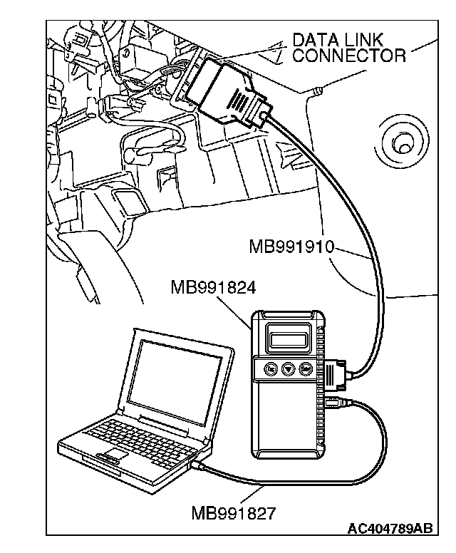 1. Connect scan tool MB991958 to the data link connector.