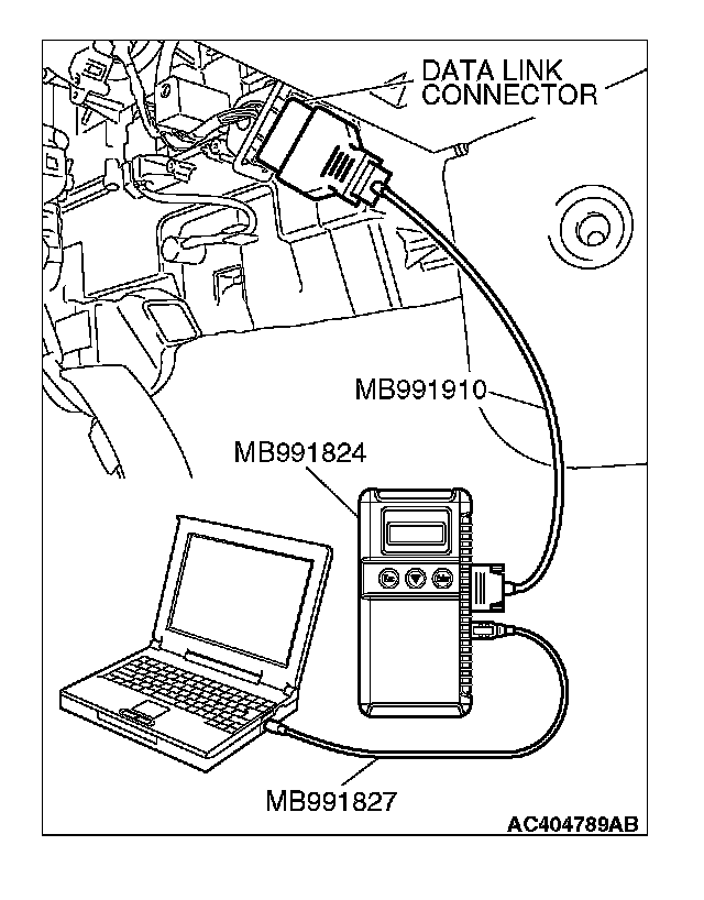 CAUTION: To prevent damage to scan tool MB991958, always turn the ignition switch to the "LOCK" (OFF) position before connecting or disconnecting scan tool MB991958.