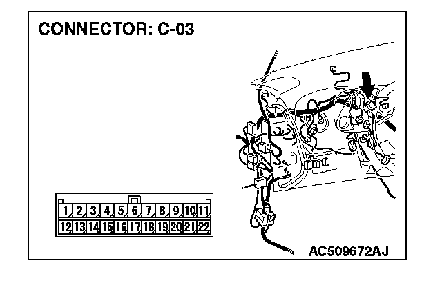 NOTE: Also check joint connector (3) C-03 for loose, corroded, or damaged terminals, or terminals pushed back in the connector. If joint connector (3) C-03 is damaged, repair or replace the connector.