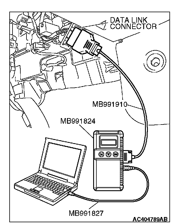 CAUTION: To prevent damage to scan tool MB991958, always turn the ignition switch to the "LOCK" (OFF) position before connecting or disconnecting scan tool MB991958.