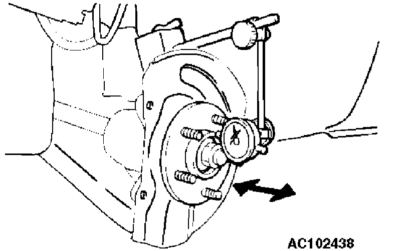 3. Attach a dial gauge as shown in the illustration, and then measure the end play while moving the hub in the axial direction.