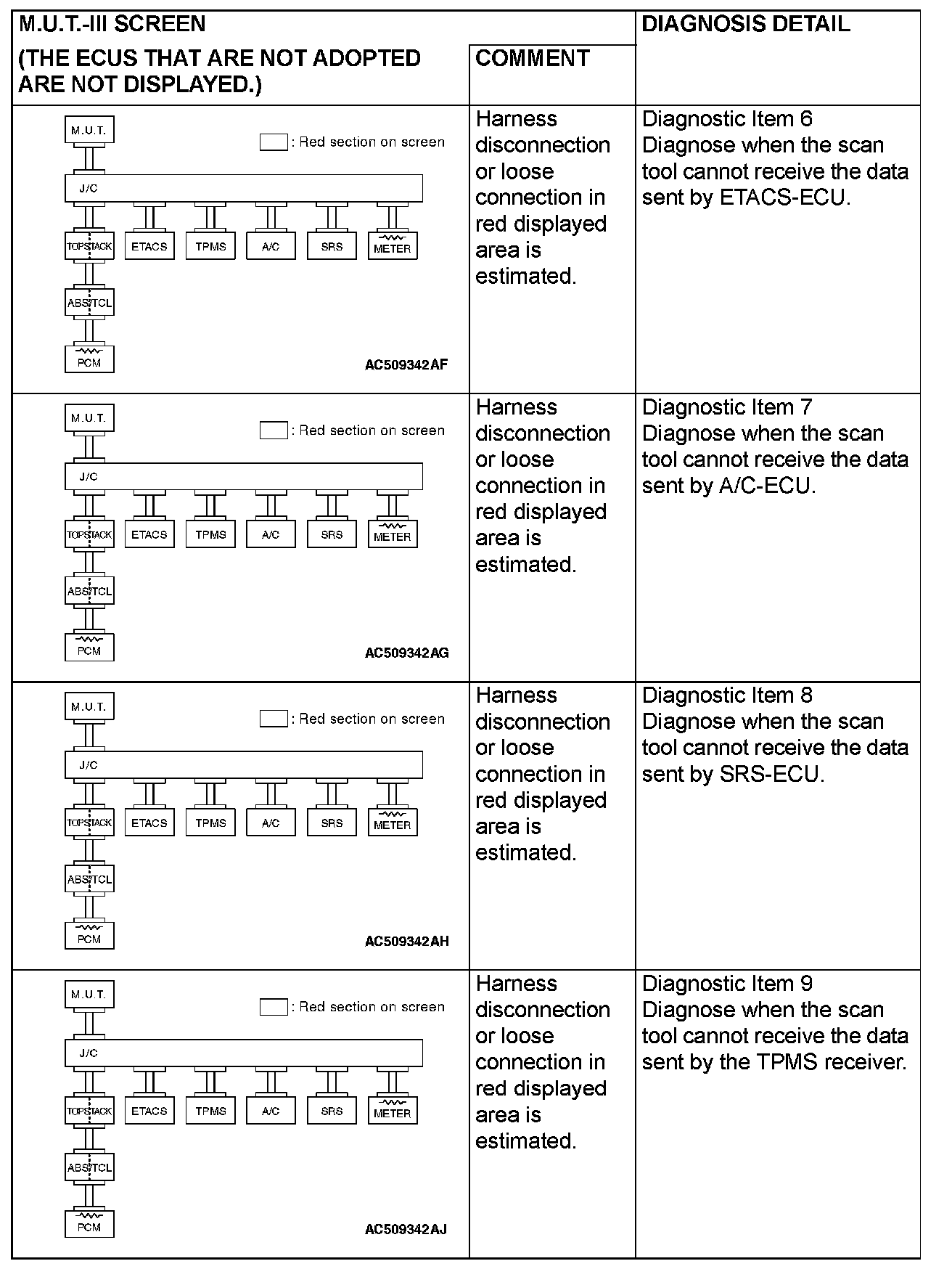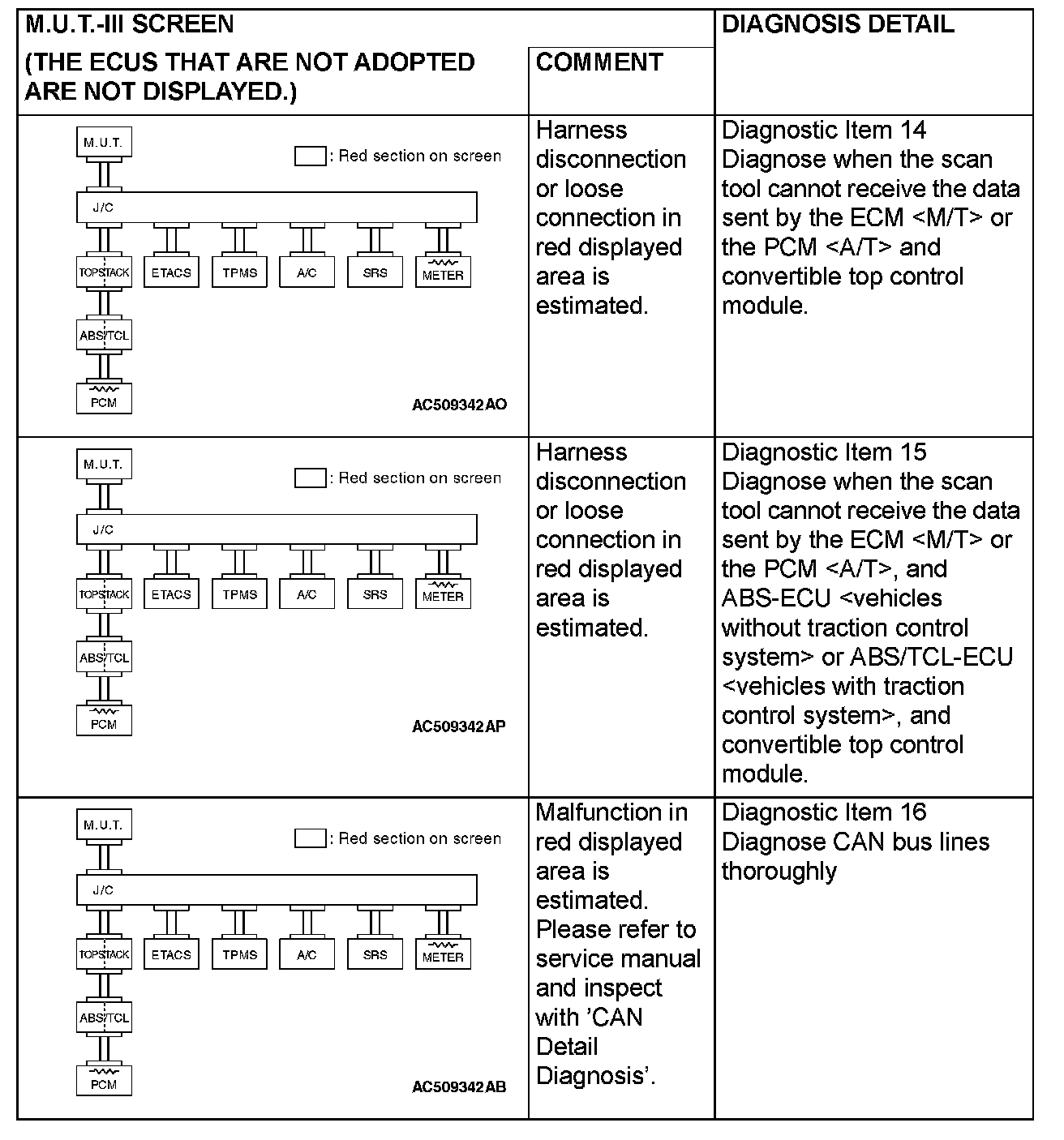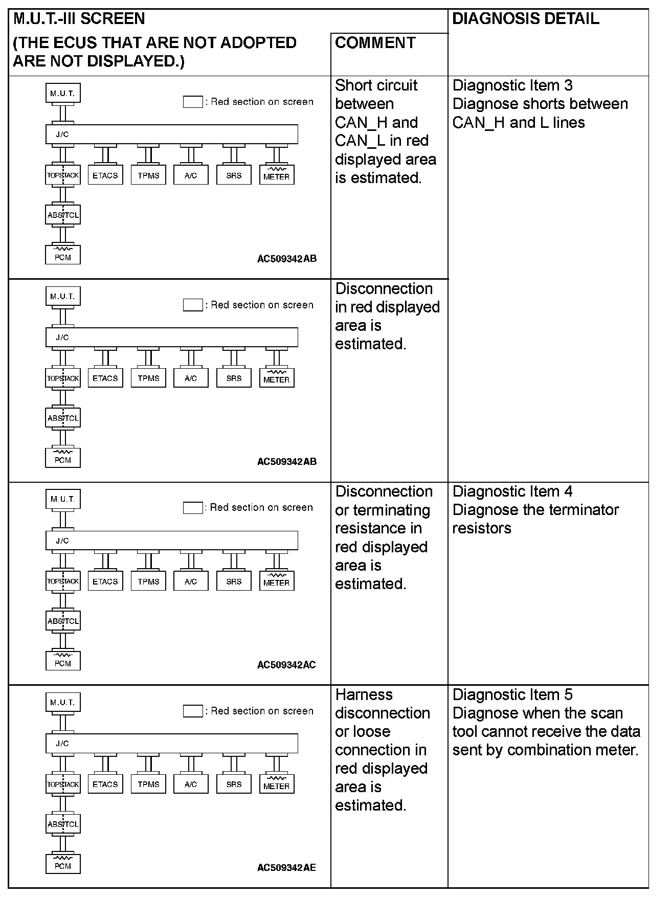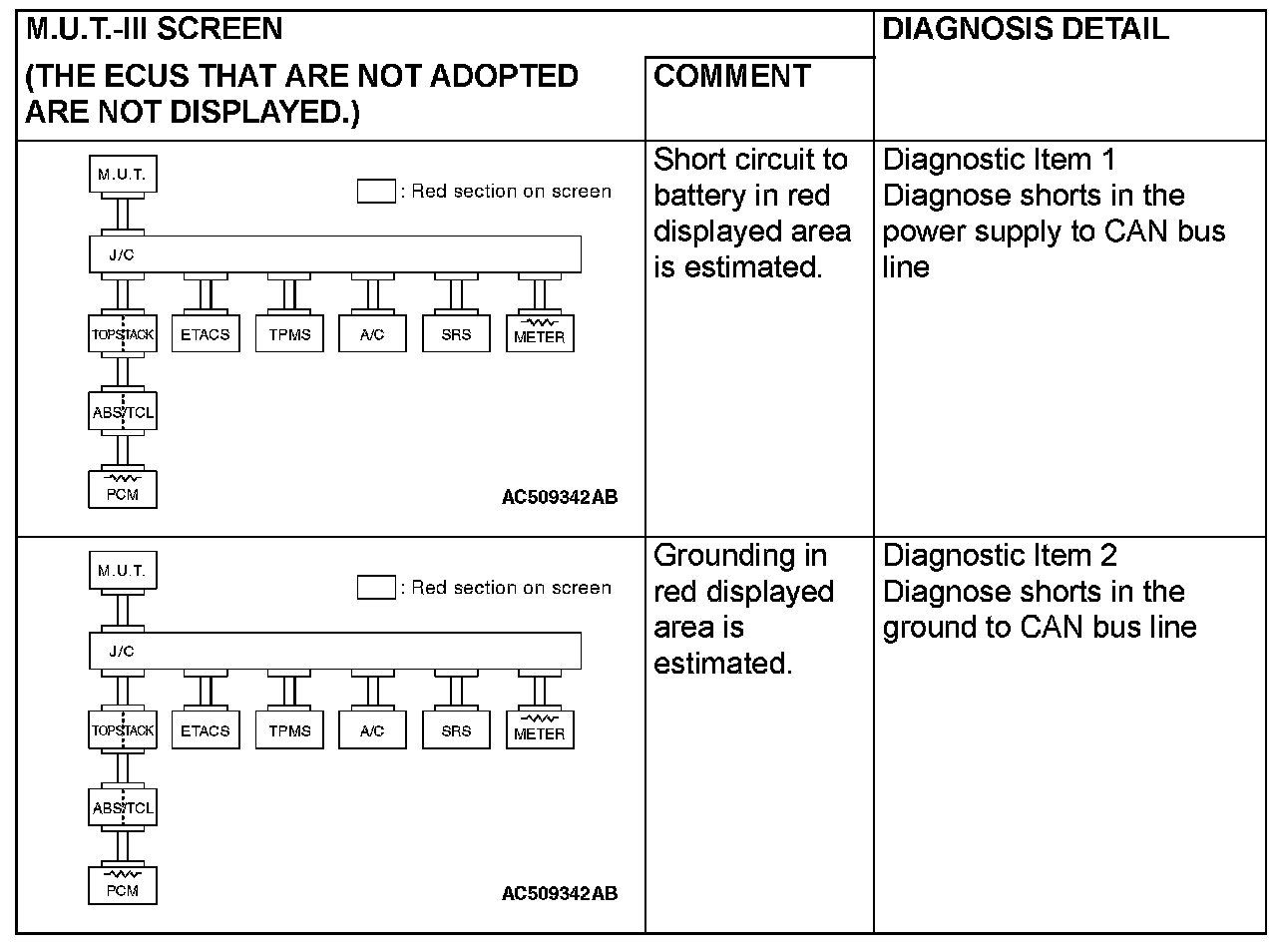 NOTE: If the screen other than above is displayed, troubles are present at two or more spots. In this case, diagnose CAN bus lines by referring to the trouble spot pinpoint procedures.