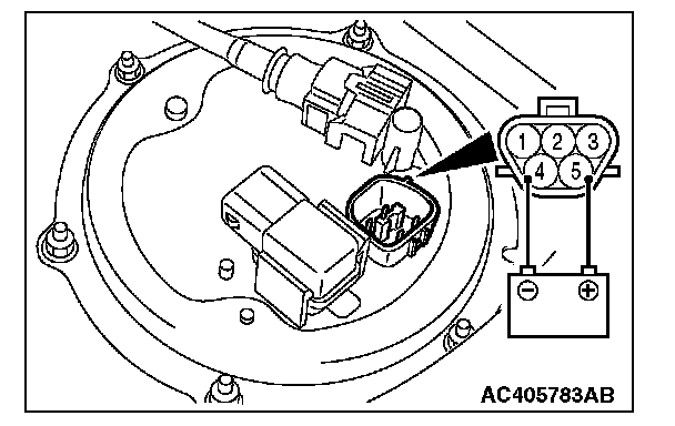 5. When the fuel pump drive connector is attached directly to the battery, check if the sound of the fuel pump operation can be heard. If no operating sound is heard, replace the fuel pump module.