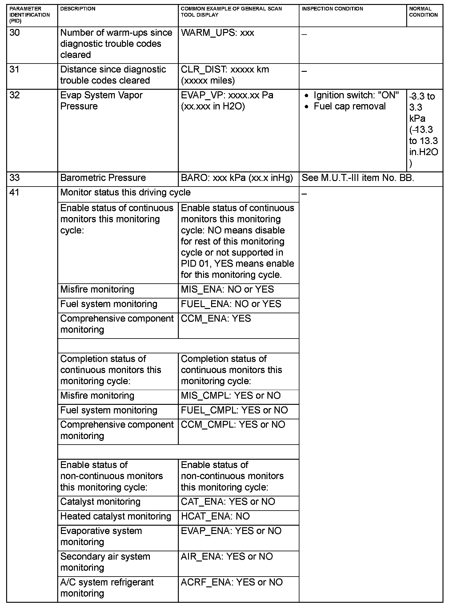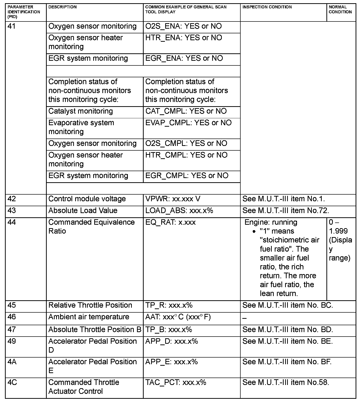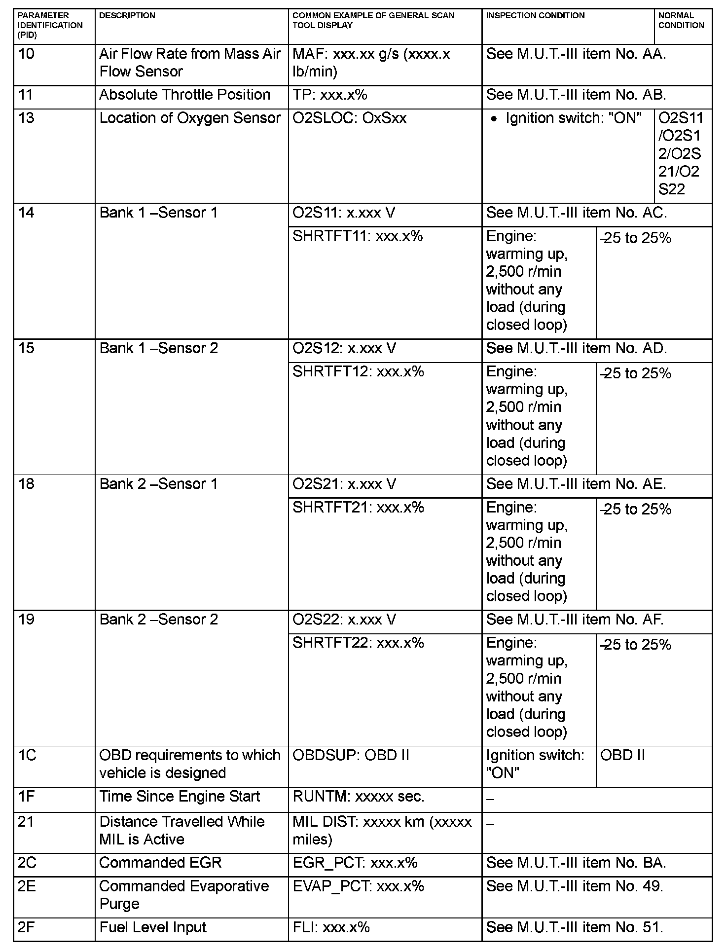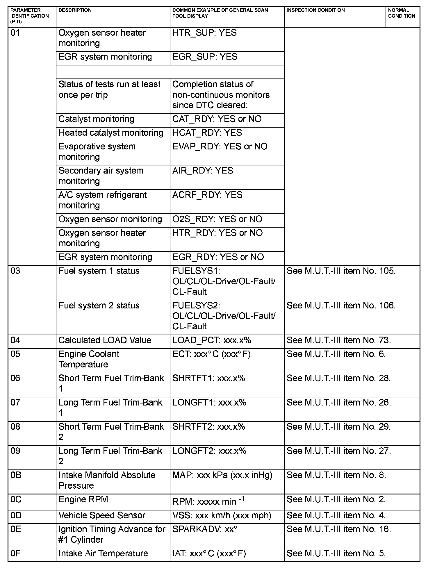 NOTE: GST MODE 01 can be accessed through the use of a general scan tool.