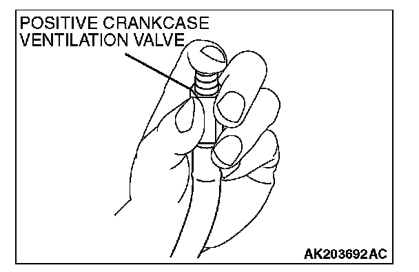 POSITIVE CRANKCASE VENTILATION SYSTEM CHECK1. Remove the positive crankcase ventilation (PCV) valve from the rocker cover, then reconnect the PCV valve to the vacuum supply hose.