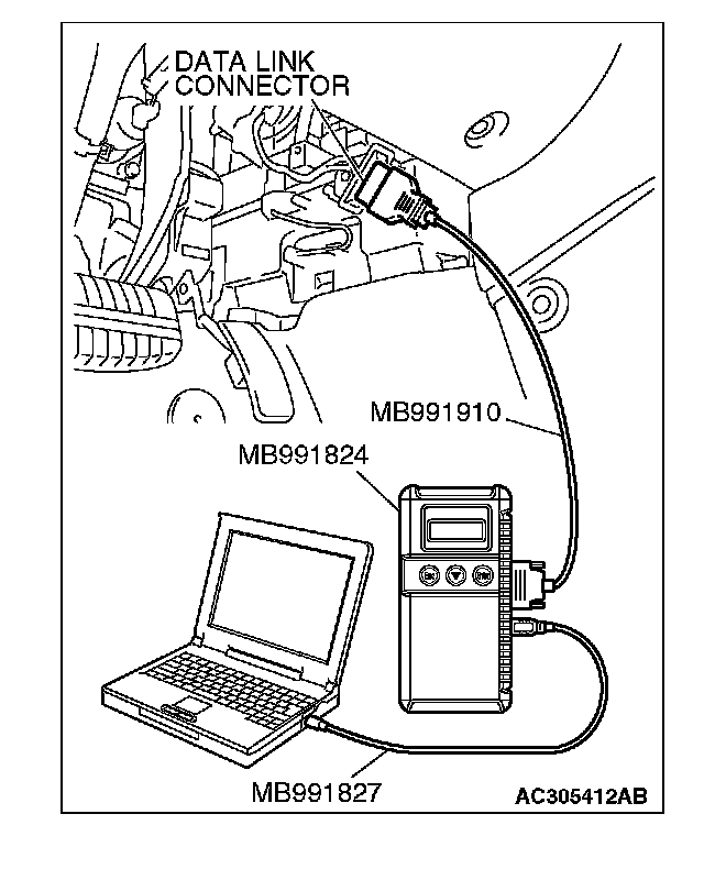 2. Connect scan tool MB991958 to the data link connector.