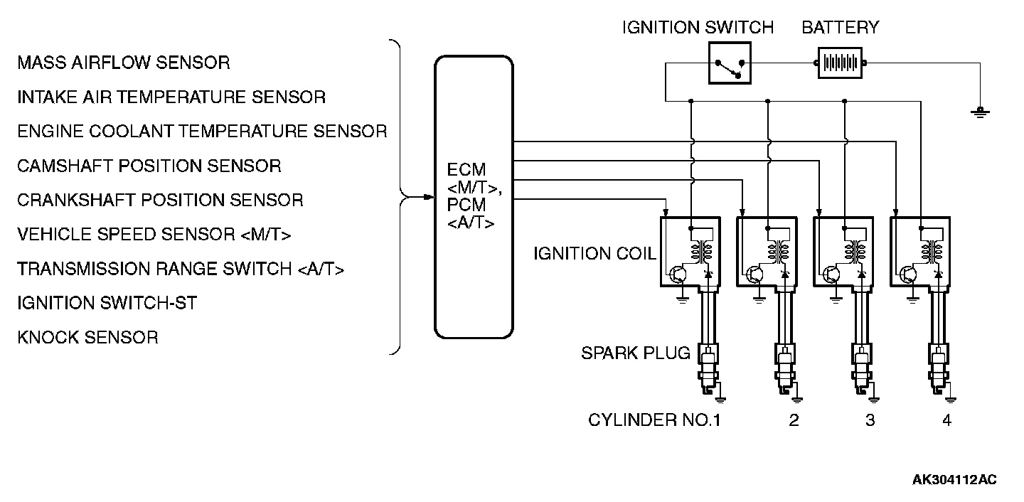 The ECM or PCM determines which ignition coil should be controlled by means of the signals from the camshaft position sensor which is incorporated in the camshaft and from the crankshaft position sensor which is incorporated in the crankshaft. It also detects the crankshaft position to provide ignition at the most appropriate timing in response to the engine operation conditions.
