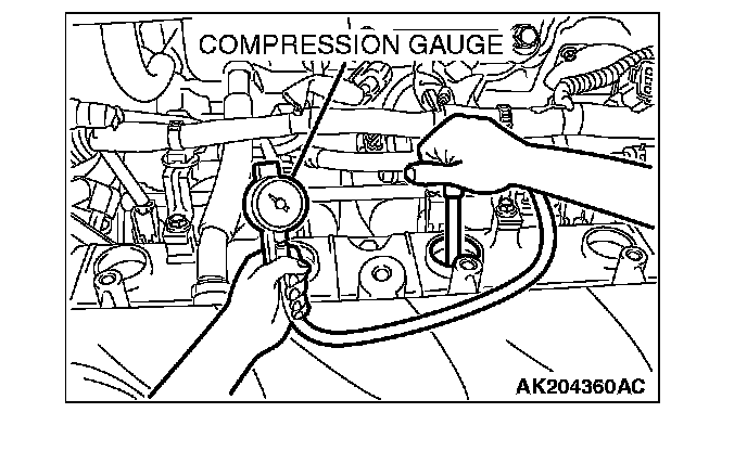 6. Crank the engine with the throttle valve fully open and measure the compression pressure.