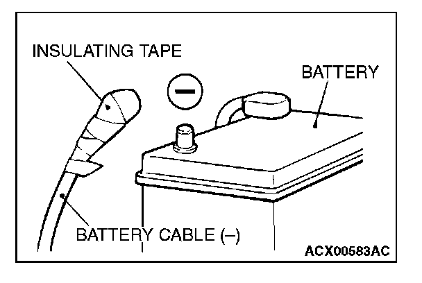 Disconnect the negative (-) battery cable from the battery and tape the terminal to prevent accidental connection and air bag deployment.