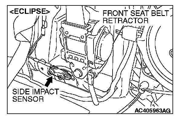 NOTE: The illustration above shows the side impact sensor (RH). The position of the side impact sensor (LH) is symmetrical to this.