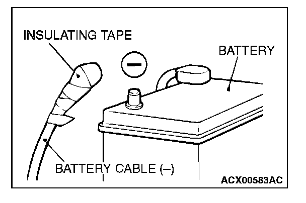 Disconnect the negative (-) battery cable from the battery and tape the terminal to prevent accidental connection and air bag deployment.