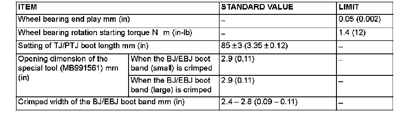 SERVICE SPECIFICATIONS: