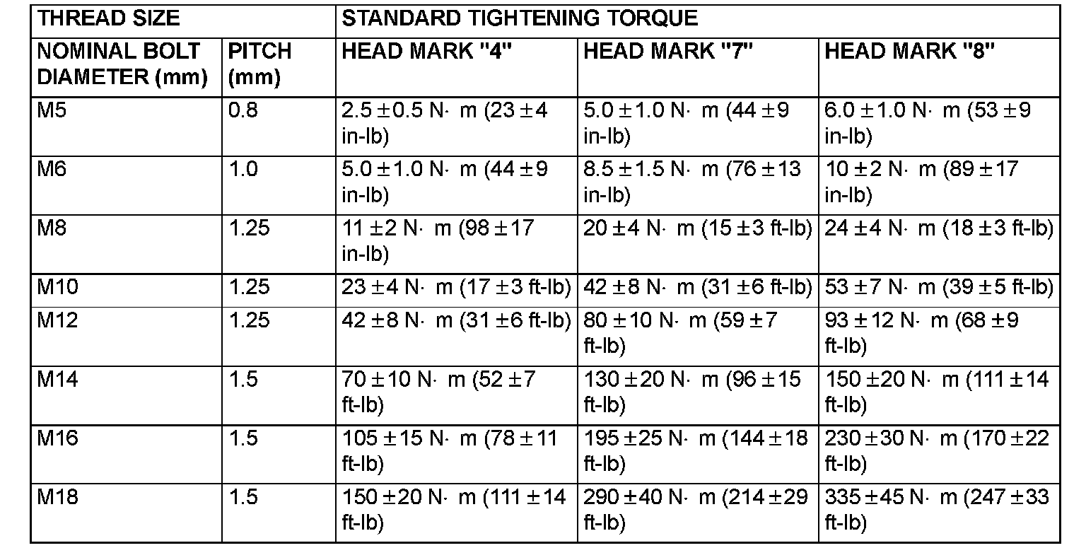TIGHTENING TORQUEEach torque value in the table is a standard value for tightening under the following conditions.