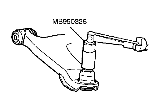 Move the ball joint stud several times and install the lower arm nut on the stud. Using special tool MB990326, measure the ball joint breakaway torque.