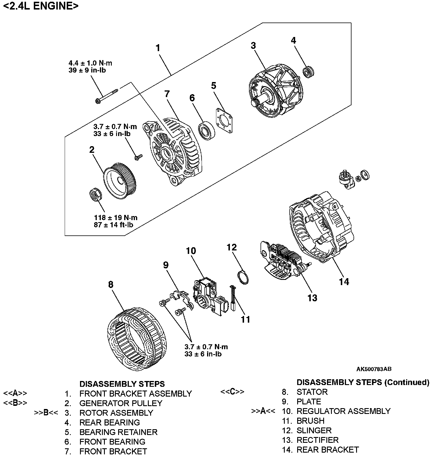 <> FRONT BRACKET ASSEMBLY REMOVAL