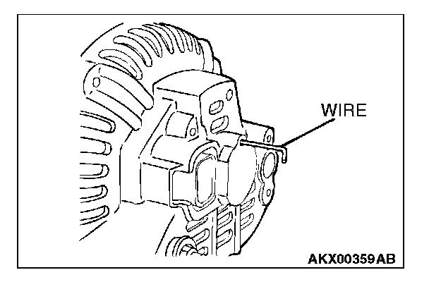 After installing the regulator assembly, insert a wire through the hole provided on the rear bracket while pressing down on the brush, and secure the brush.