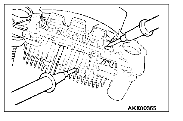 2. Check the continuity between the negative rectifier and the stator coil lead connection terminal with a tester. If there is continuity between the terminals, the diode is grounded, so replace the rectifier.