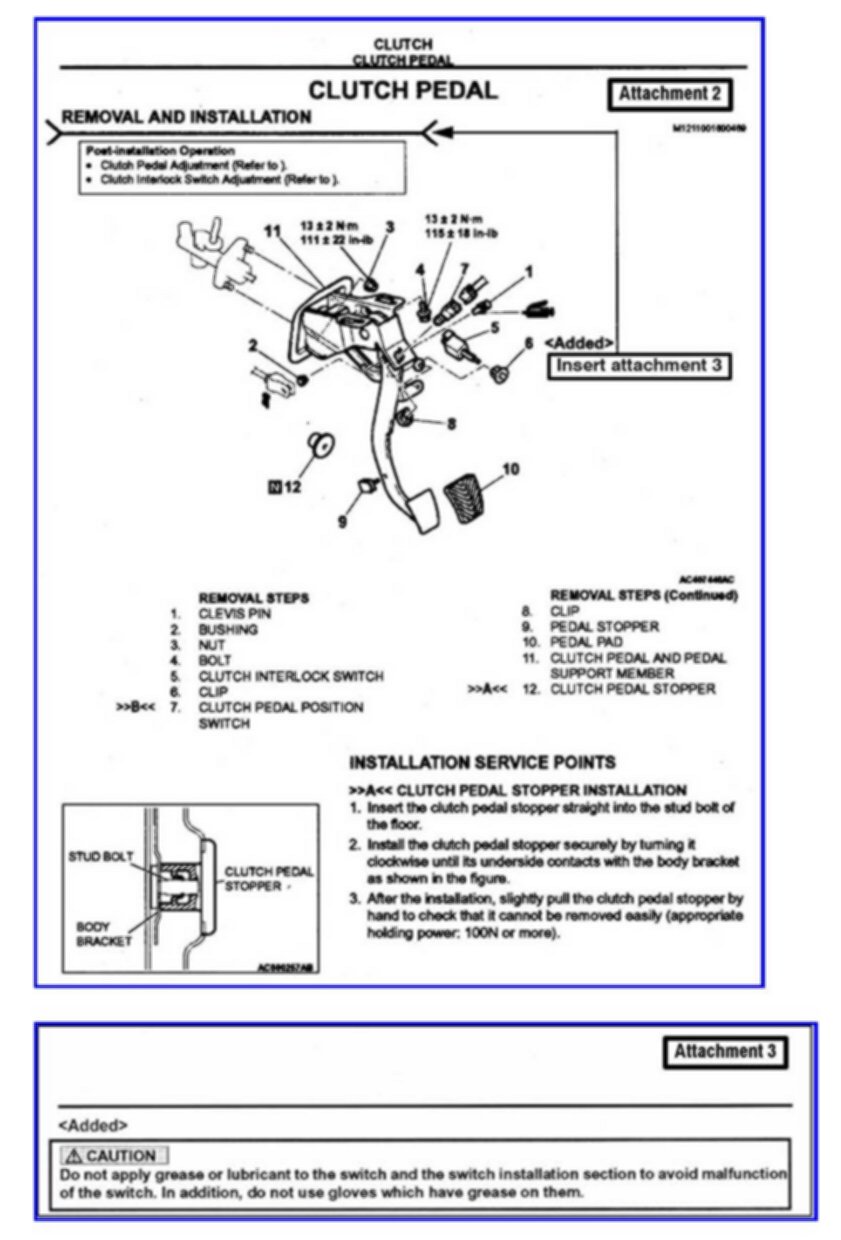 M/T - Revised Clutch Interlock Switch Service Precaution