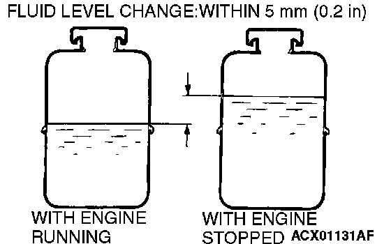 10. If the change of the fluid level is 5 mm (0.2 inch) or more, the air has not been completely bled from the system. The air bleeding procedure must be repeated.