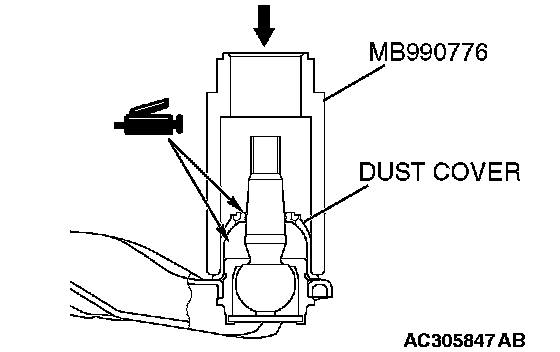 3. Using special tool MB990776, drive in the dust cover until it is fully seated.
