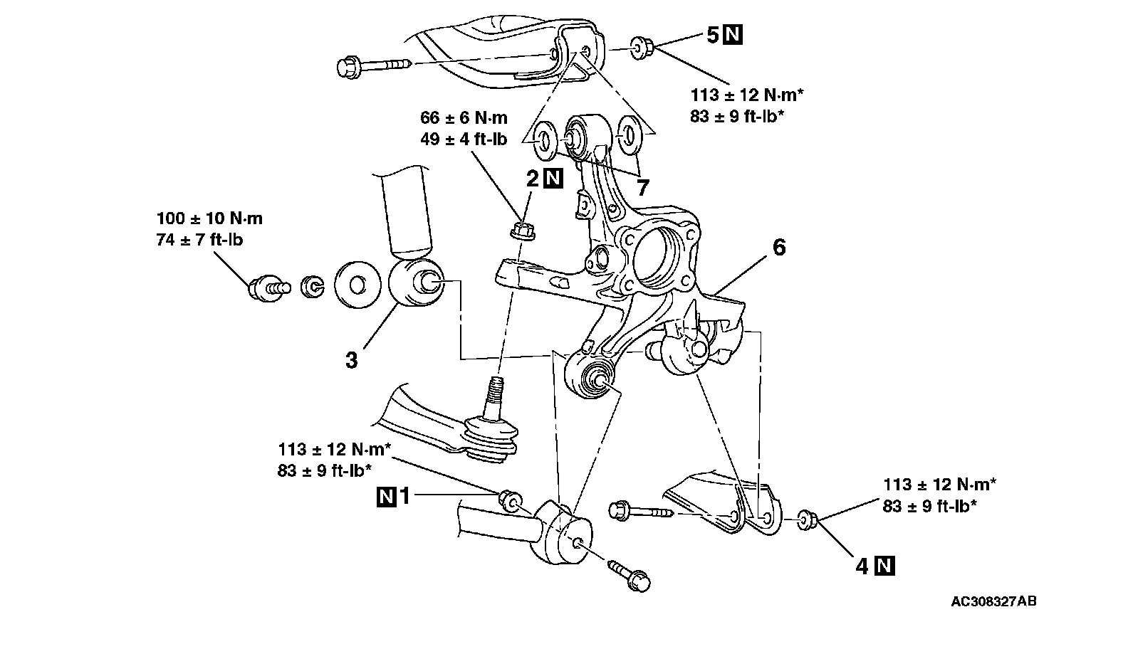 *: Indicated parts which should be temporarily tightened, and then fully tightened with the vehicle on the ground in the unladen condition.