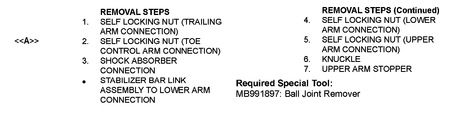 [[A]] SELF LOCKING NUT (TOE CONTROL ARM CONNECTION) REMOVAL
