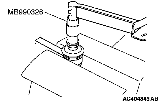 1. After shaking the ball joint stud several times, install the nut to the stud and use special tool MB990326 to measure the breakaway torque of the ball joint.