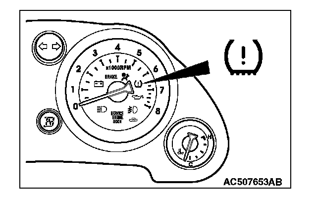 TPMS WARNING LIGHT CHECK1. Check that the TPMS warning light illuminates for approximately three seconds when the ignition switch is turned to the "ON" position. (If it does not illuminate, perform troubleshooting for TPMS Inspection Procedure No. 3). Inspection Procedure 3: the TPMS Warning Light Does Not Illuminate As A Bulb Check For Three Seconds When the Ignition Switch I