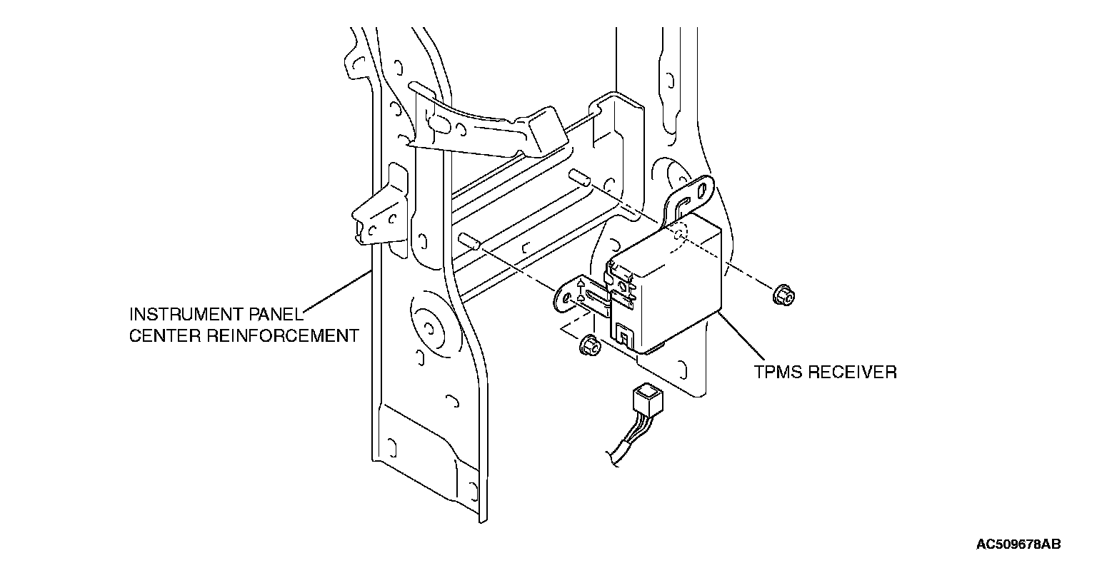 - If the TPMS receiver is replaced, execute "Tire Pressure Sensor ID Registration" on scan tool MB991958 "Special Function."