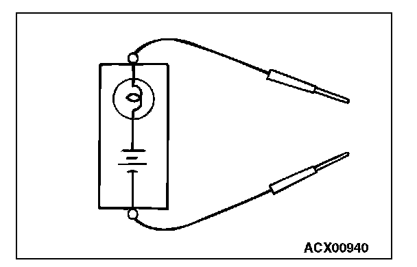 A test light consists of a 12V bulb and lead wires. It is used to check voltages or short circuits.