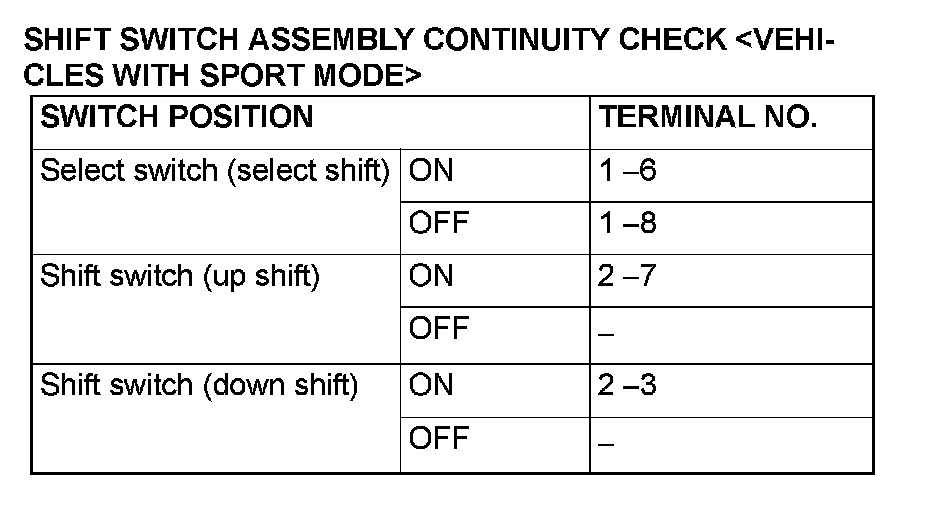 Shift Switch Assembly Continuity Check <Vehicles With Sport Mode> (Part 1):