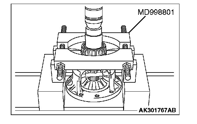 1. Support the taper roller bearing with special tool MD998801, and then set them on the press.