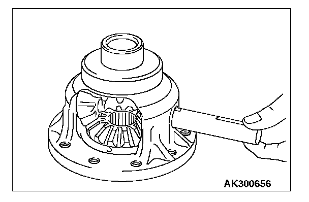 1. Mount a spacer on the back surface of the side gear, and then install the side gear in the differential case.