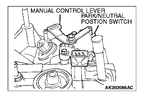 7. Loosen the manual control lever tightening nut, and then remove the manual control lever and the park/neutral position switch.