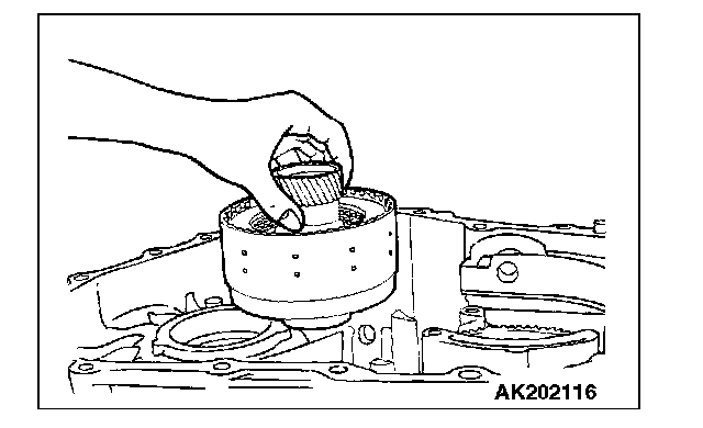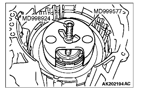 (1) Using special tools MD999577 and MD998924, compress the one-way clutch inner race.