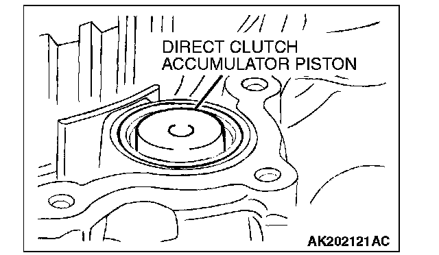 49. Remove the direct clutch accumulator piston and spring after removing the O-ring.