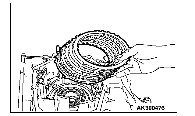 61. Remove the brake plates (five pieces), brake discs (six pieces) and pressure plate.