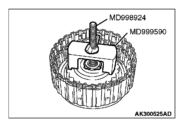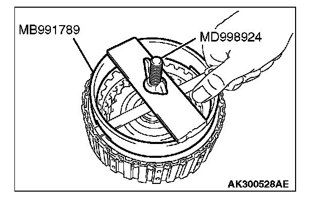 2. Set special tools MB991789 and MD998924 as shown in the illustration, and compress the clutch element.