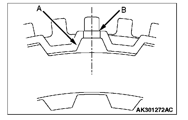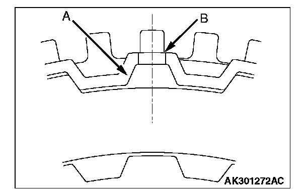 2. Install the clutch reaction plate in the direction shown. Install it the same as the clutch plate, so that the places with no teeth (marked "A") are aligned with the holes in the retainer (marked "B").