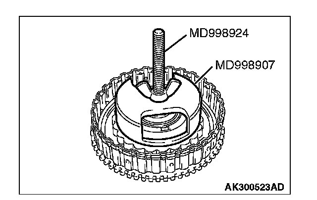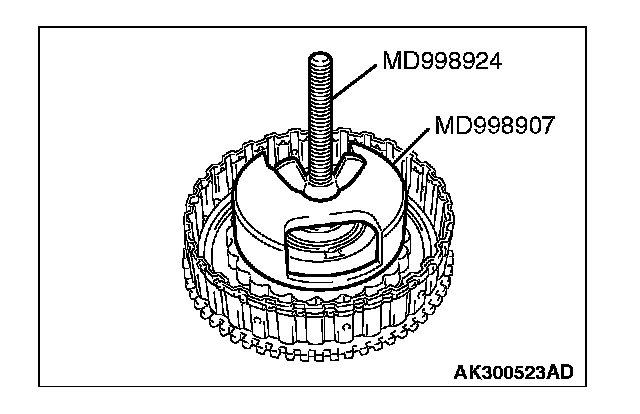 1. Set special tools MD998907 and MD998924 as shown in the illustration.