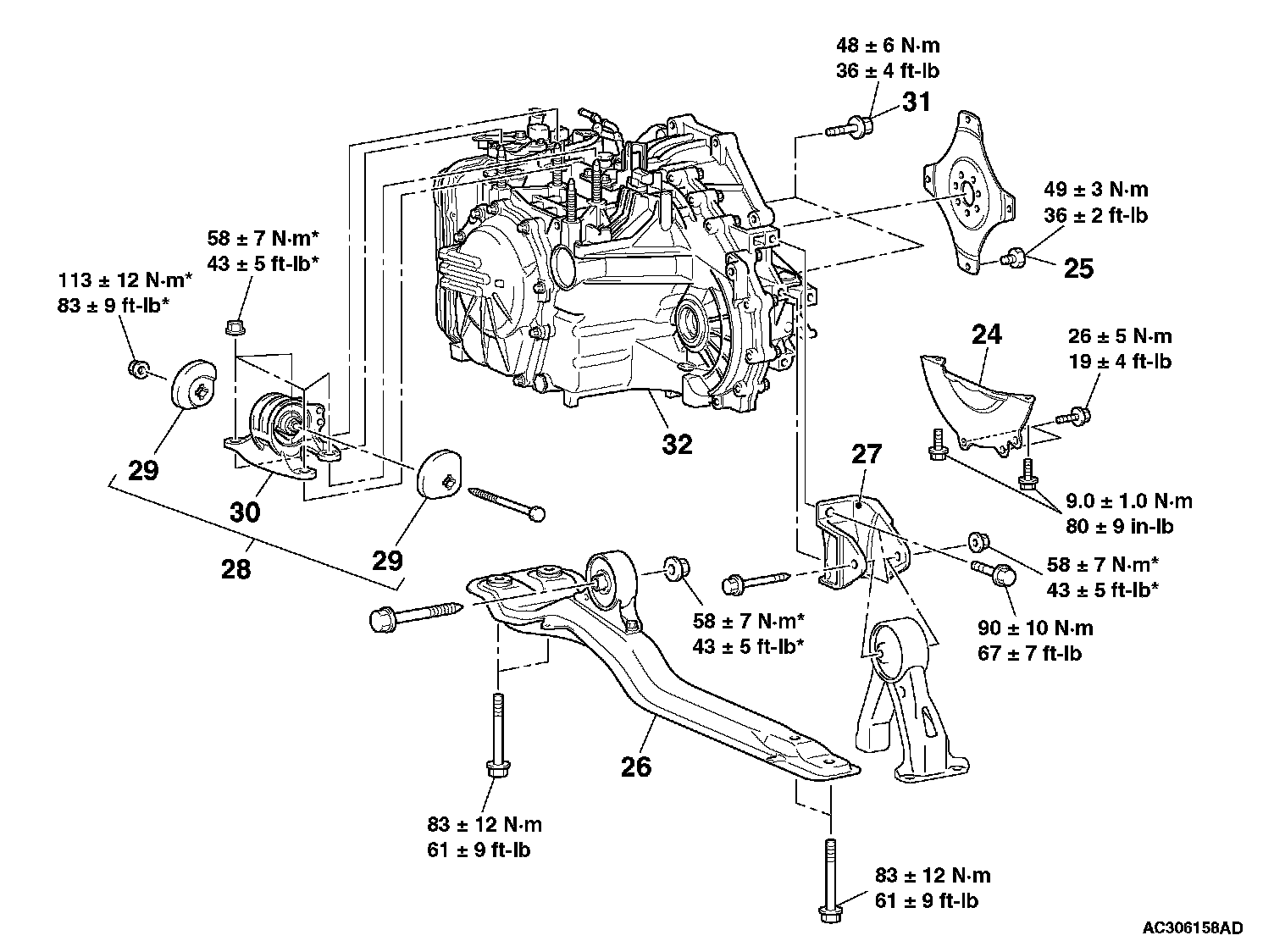 Tightening torque: 226 ±29 Nm (167 ±21 ft-lb)