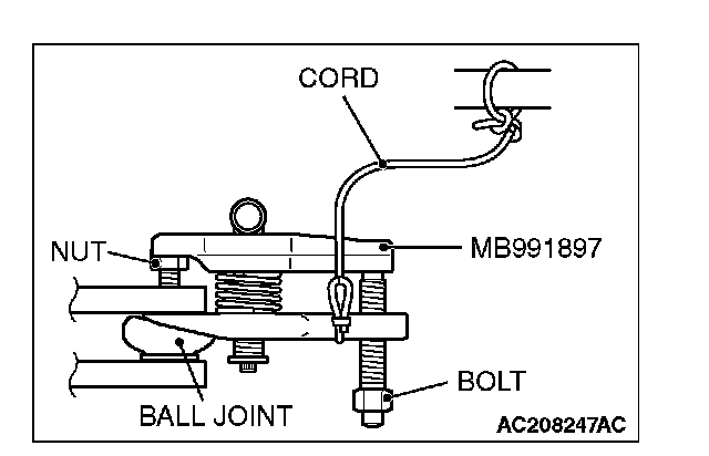 - Do not remove the nut from ball joint. Loosen it and use the special tool to avoid possible damage to ball joint threads.